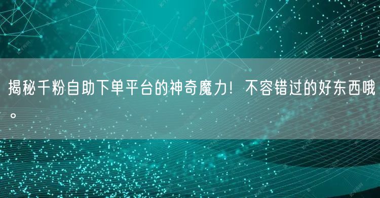 随着互联网的发展,粉丝经济逐渐崛起,越来越多的人开始关注如何快速获取粉丝、扩大影响力。千粉自助下单平台应运而生,以其高效、便捷的特点吸引了众多用户的关注。本文将带你一起揭秘千粉自助下单平台的神奇魔力,探寻其背后的秘密。