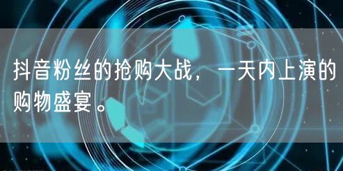 总之,抖音粉丝抢购大战是一场火热非凡的购物盛宴。在这一天里,粉丝们尽情享受购物的乐趣,参与到各种活动中去,赢取各种大奖。而对于电商来说,这也是一次难得的机会,通过活动增加品牌影响力、扩大市场份额、提高销售额。相信在未来,抖音粉丝抢购大战将继续上演,为粉丝们带来更多的惊喜和乐趣。