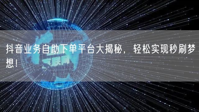 抖音业务自助下单平台是一个为抖音用户提供便捷服务的平台。通过这个平台,用户可以快速下单购买抖音相关业务,如粉丝增长、视频点赞、评论助力等。平台操作简单,效率高,深受用户喜爱。