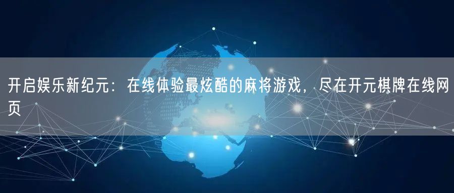 开启娱乐新纪元:在线体验最炫酷的麻将游戏,尽在开元棋牌在线网页